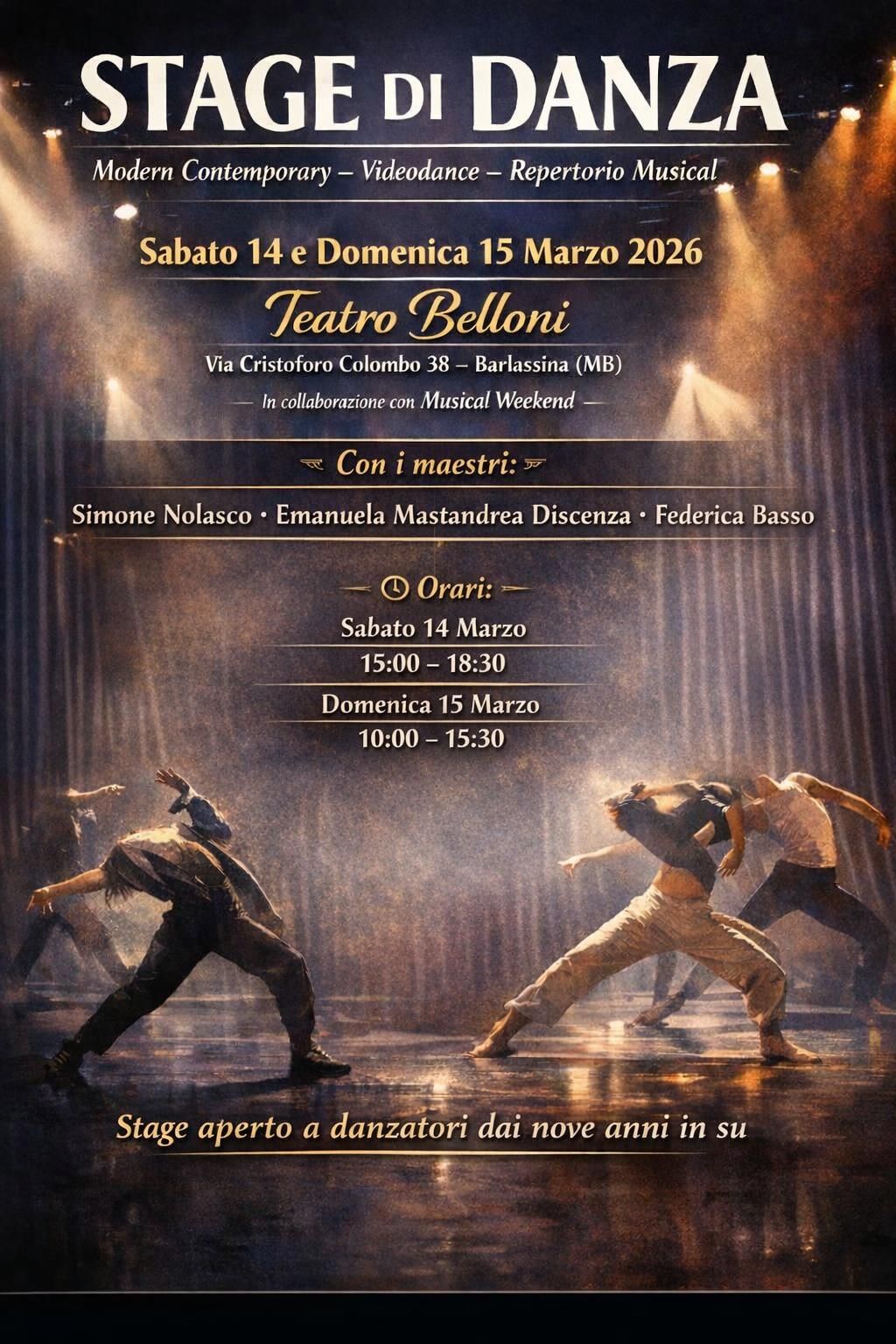 Stage di Danza Modern Contemporary, Videodance, Modern Jazz e Musical Broadway